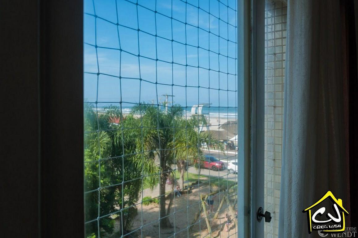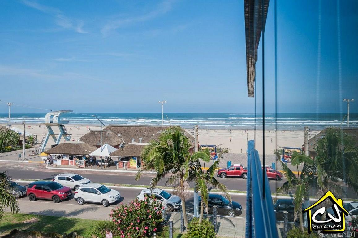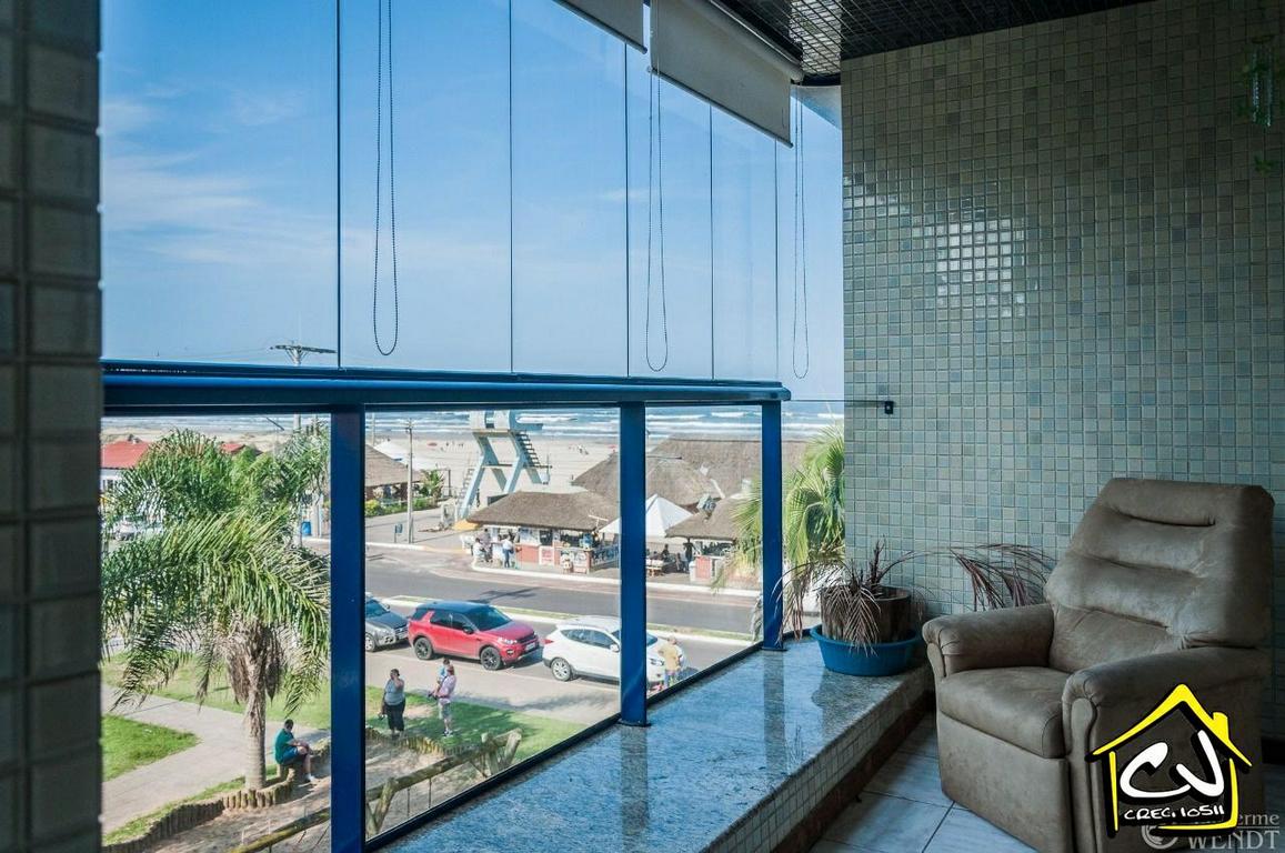 Apartamento em Torres RS de 3 dormitórios (todos com ar-condicionado), sendo 1 suíte, com ampla sala de estar/jantar, sacada com excelente vista para o mar, cozinha, banheiro social, escritório, área de serviço, garagem para 1 carro. À beira mar (PRAIA GRANDE). De frente para os Quiosques.
