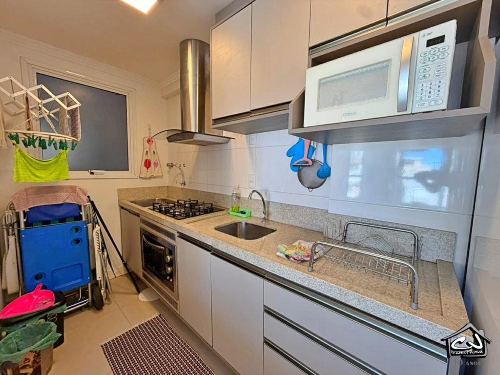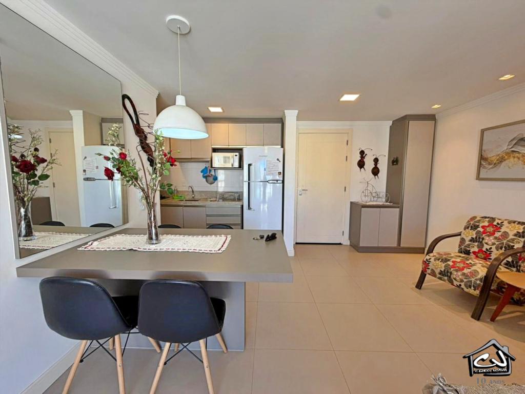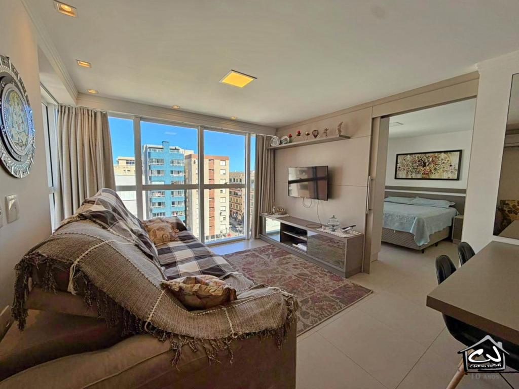 Apartamento (Flat) em Torres RS de 1 dormitório (com ar-condicionado) com sala de estar/jantar, com Wi-Fi, cozinha, banheiro social, churrasqueira, garagem para 1 carro. Apenas a 3 quadras do mar (PRAIA GRANDE OU PRAINHA). Com Piscina no prédio, com vista panorâmica para a cidade e Academia.