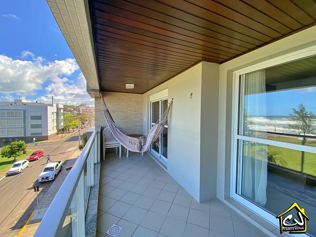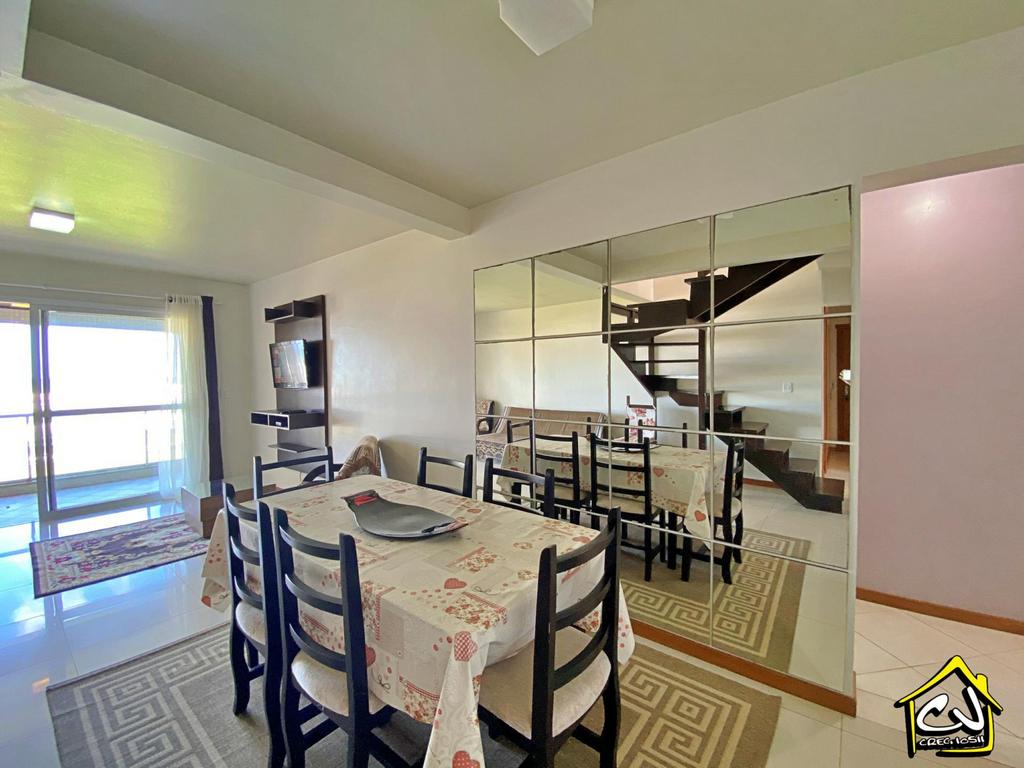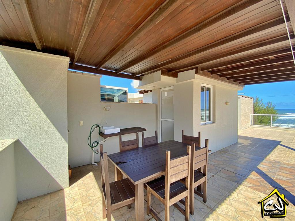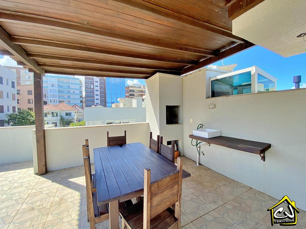 Cobertura em Torres RS de 3 dormitórios, sendo 3 suítes e 2 com ar-condicionado, com ampla sala de estar/jantar, lavabo, cozinha e área de serviço, garagem para 2 carros, ampla sacada com churrasqueira e com EXCELENTE VISTA para o mar e com amplo terraço com outra churrasqueira. A apenas 1 quadra do mar (PRAIA GRANDE OU PRAINHA).
