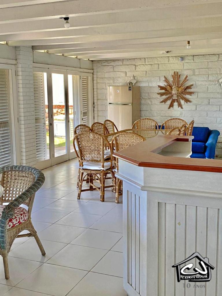 Excelente casa de 5 dormitórios, sendo 2 suítes e 1 com closet, ampla cozinha, área de serviço, amplo pátio com quiosque com churrasqueira, churrasqueira no living do térreo da casa, ampla sala de estar/jantar, nos 2 andares, garagem fechada para 2 carros, cabendo mais 2 no pátio, na beira mar, com excelente vista para a praia grande.