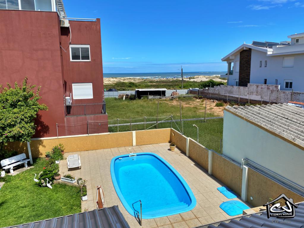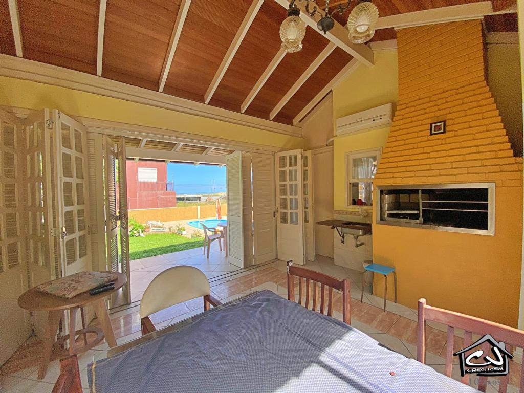 Casa em Torres RS de 4 dormitórios (3 com ar-condicionado), sendo 1 suíte com sacada e vista para o mar, ampla área com churrasqueira com ar-condicionado, lavabo, 2 banheiros sociais, amplo pátio com piscina, cozinha completa, área de serviço, garagem fechada para 2 carros e cabendo mais 2 no pátio. A apenas 1 quadra do mar (Praia Grande).